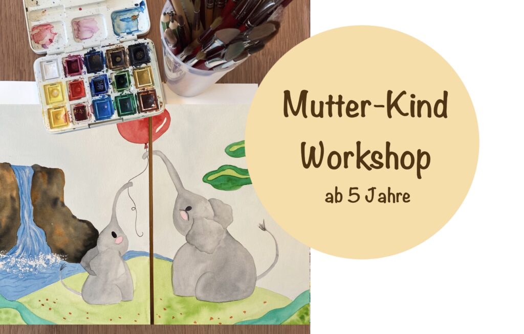 Elefanten sind das Symbol für Familienzusammenhalt und Fürsorge. In diesem besonderen Aquarell-Workshop für Mütter und Kinder (ab 5 Jahren) erschafft ihr ein gemeinsames Doppel-Porträt, das eure einzigartige Verbindung zeigt.
