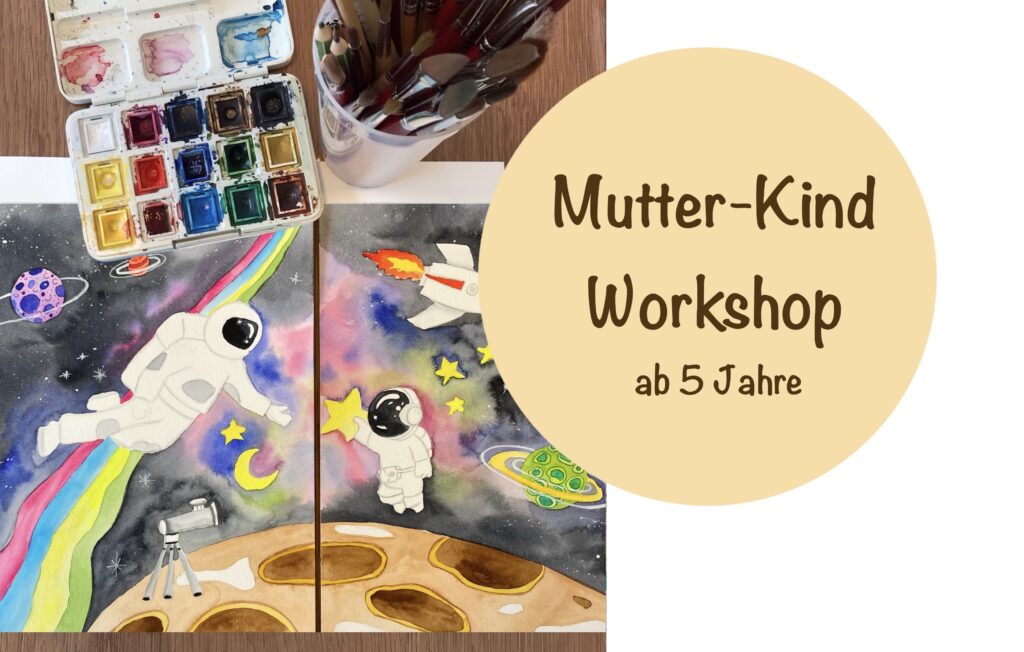 Bereit für ein Abenteuer im Weltraum? In diesem Aquarell-Workshop für Mamas und kleine Entdecker (ab 5 Jahren) malen wir uns bis zum Mond. Jedes Duo erschafft ein zweiteiliges Kunstwerk, das die unendliche Verbindung zwischen Mutter und Kind zeigt.