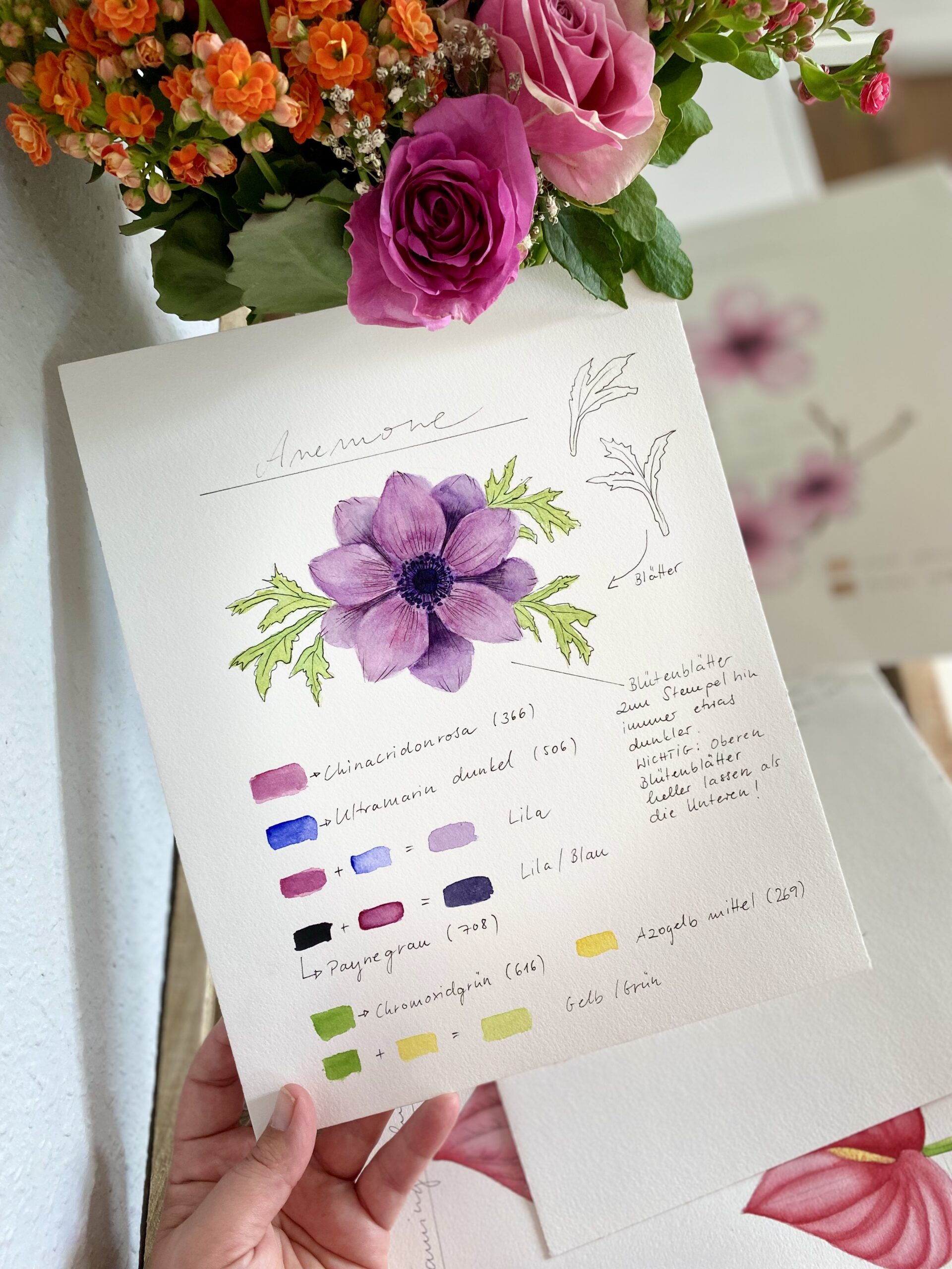 Während der Kurs dich anleitet, die Formen zu sehen, wirst du gleichzeitig ermutigt, echte Blumen zu studieren. Das trainiert nicht nur deine Augen-Hand-Koordination, sondern schärft auch deinen Blick für Details.